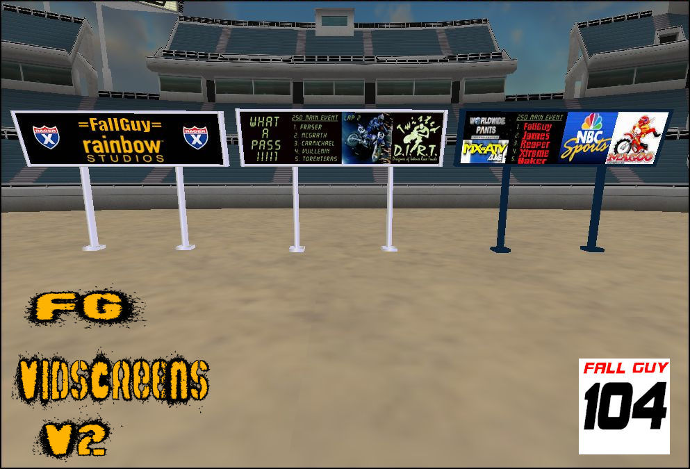 3 vidscreen scoreboards and 6 diffrent sized Stadium video screens to choose from per request..Thanks to Twisted Dirt for the original vidscreen template..Original Twisted Dirt vidscreen model included with upload..