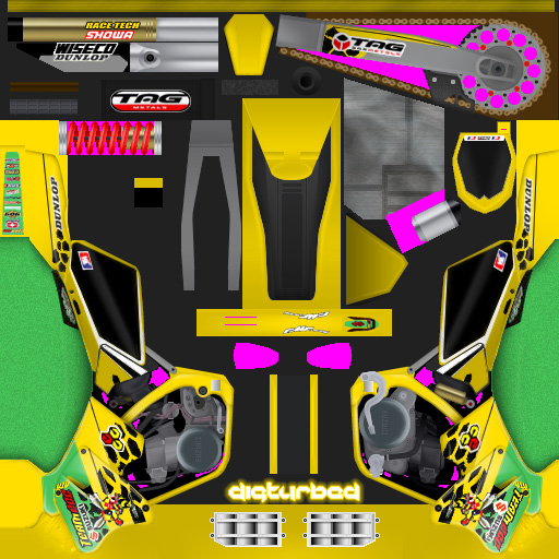 Not my skin, just did this in colaboration with Two_four and I'm just the uploader. Two_four's comments : Heres the 04 Team ECC bike, took about 2 days stright to make this, working none stop. Evo made the sick gear to go with it. Credit: Disturbed for Template, frame help Tweaked: some logo's and ECC logo and to anybody else I missed. Download and Enjoy