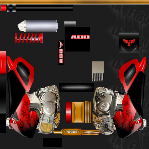 This is my personal version of the 2005 CRF 50. It is made for the BBR XR 50 model made by twisted dirt. NOTE that you are required to have Bike Switcher installed and set on that model for this skin to work properly. I see no sense in using parts from this skin now, as i am realesing a PSD template for you all within a few days. Have fun and leave your coments // Martin.