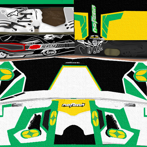 THis is the 05 no fear elecktron gear that i have been working on for a few days now.I sorta made up the back but the front is the real stuff.I would like to thank VMX_Gravityx2 for his base helmet and boots(I think the boots are his)And VRT_evo for his sleeves. so download and enjoy.