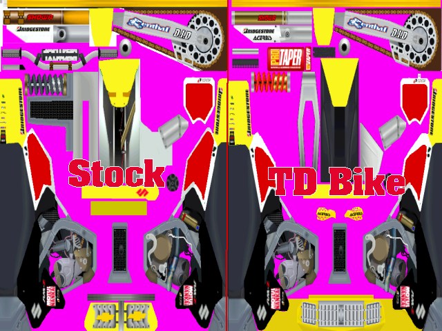 i got this idea from a dirt rider that had the spy photos of the RM-Z450 i try my best to get it just right but there were somethings i could not do im hoping someone will make a better one than mine but if not owell umm there r 2 bikes in this one is stock i used the RMz 250f base form Whitmer0100 also i used tk_tweeked's 03 rm bike that me made for td modle so props gos out them there the real creators hope u like enjoy let me no what u think RoBee www.robeedesigns.cjb.net