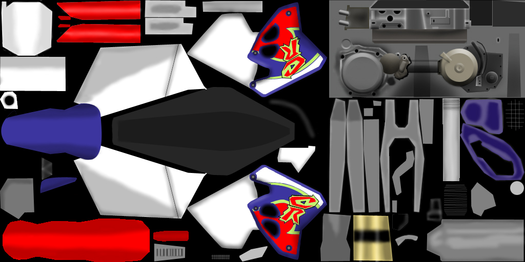 This is my first skin done from scratch, no template. This is a PSD file, so it can be used as a temp, or as an actual skin. An EASY way to put it in mva without multiex is to use sick tricks unleashed, put the file in for the RMZ250 plastics, then save as you exit. it works.