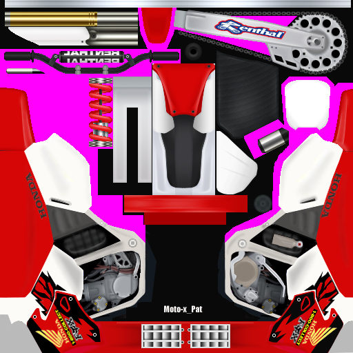 I took VMX_GravityX2's '05 Honda base and made an old school Honda template over it. All of the other parts are his, like the engine, shock, etc. The parts that I made include the base for the 95 Honda and the graphics and shadows.