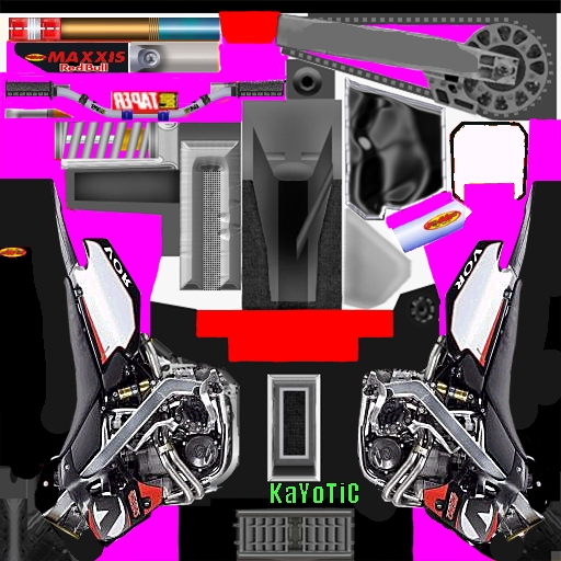 lol i love this bike. i made it off of another bike, sorry i forget who. i just pasted the side of the bike on it. there is alot of pink! yuck! but i love this bike and had to give it a try. i think sumone better should try it! its a nice bike!!