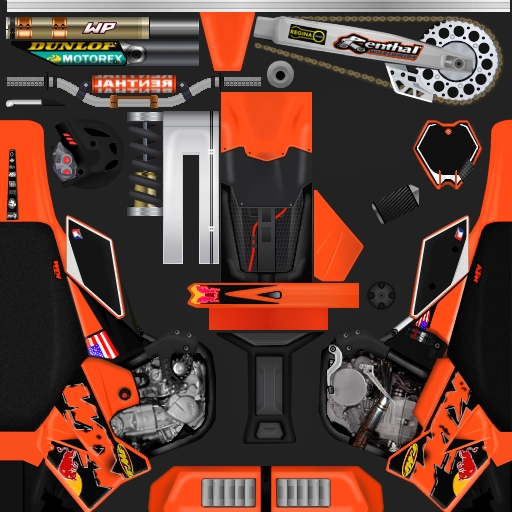 Heres the Red Bull KTM 250SXFs. I think it came out really clean and crisp. HUGE props to to Danny (VMX_D-Dub) for getting the alpha layer to work. This skin uses Bikeswitcher with the TD_HondaCR model and ive included that in the .rar