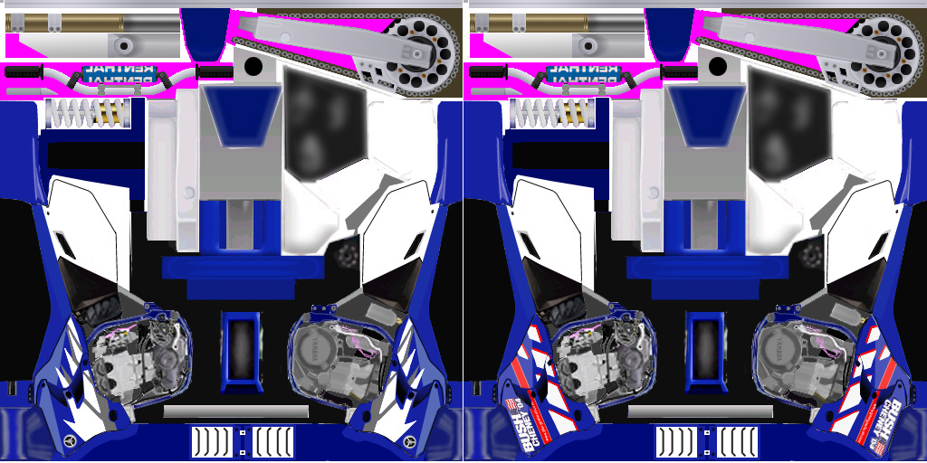 Well, i made my own engine on this, my own frame plastics graphics etc. I used VMX gravitys bars and front forks from his 04 CRF250 base on this bike and i used tff thormxs center bottom thing a ma jig on the bottom of the frame, fender and rear shock spring layout and the crap in the middle of the skin thats white and stuff. The graphics are stock on one bike, and BUSH CHENEY 04' graphics on the other, which is like a semi-replica of the same ones that were on ryan dudeks yz250F at the GLEN. sooo have fun with this bangin bars with ur friends in support of ur re elected president George W. Bush. Hes a baller.