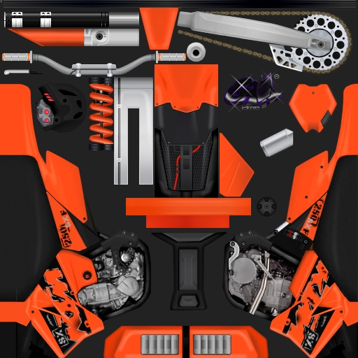 Its been awhile sense Ive uploaded a skin. Heres a 2006 KTM 250SXF that I basicly hand drew cept for the motor. I think it came out really good. I cant save 32 bit skins so HUGE props to to Danny (VMX_D-Dub) for getting the alpha layer to work, and credit also goes to the GALA for the base. Stay tuned I got more skins that are gonna be uploaded soon.