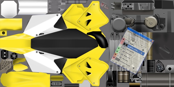 The plastic parts can be changed to any colour you like under the PLASTIC PARTS folder. I dont recomend chaning the engine and frame if youre a beginner, but you can do that also.