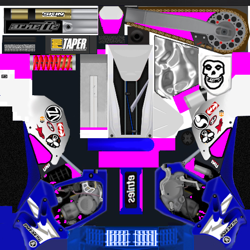 This is the first skin i have put out. I dident make much of it i just picked the best bits from a few bikes, the base is made by thFSX_tw0gh0st1 the swing arm is i think made by tk_disturbed and all the other bits im not sure but thanx anyways. Hopp you like it, i will probbley be putting out some more skins soon im just waiting for the new freestyle modle (cough cough disturbed)