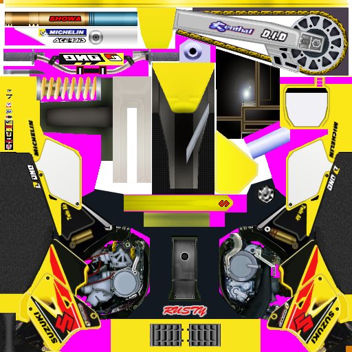 hi all, here is another almost exact replica of Kevin Windhams 2002 suzuki, i didn't want to add the front blue plate or even the number plate flag. reason being for peeps who might want to add their own #'s to the skin. other than those two the bike is a complete replica. i even did it in old yellow. :) hope you like the bike