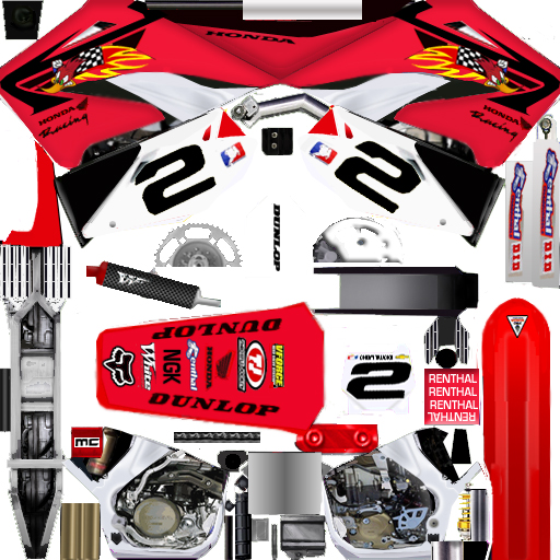 ok this is the bike that mcgrath rode at the steel city national this year this bike skin go's to the TD_CRF540 bike model in the bike switcher program. im pumped with how it came out i gotta thank me man mike (tff_kxmotox45) he made that sick ass carbon fiber white bros silencer u see before u, it looks trick man he did a awsome job. allso thanks to vmx_gravityx2 for the sick cr frame it just looks to good! thanks to him. the rest of the bike i did the plastics graphics all that good stuff i didn't feel like makin a engine so u get this one lol it looks cool in game so its good i guess. anyway im happy with the bike look close in game and u can see those enodized hubs to the left .that have mc stickers on them he had that on his nat bike so i had to put it it looks cool in game well im blabbing to much as i allways do d/l enjoy DONT RIPP!