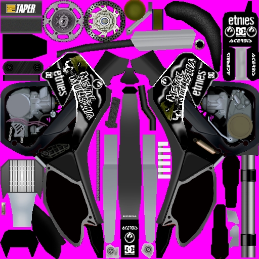 It's NOT the real Metal Mulisha bike skin..it's a nice fantasy work!!The dark frame has a good look in game...for the_GALA:bel lavoro?che dici?tu per caso riesci a fare la moto-skin del team Errezeta di Chiodi o Bartolini?domenica sono Andato a vedere il mondiale MX3 ad asti in contemporanea con il campionato europeo 125!che figata!ciao bello! LEAVE A COMMENT FOR MY SKIN ...:::yz125racer:::....