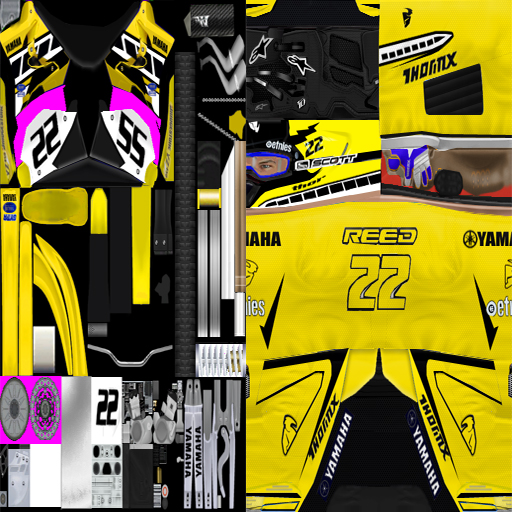 well its been quite a while for uploading for me but i couldn't resist when i saw what yamaha was doing for the riders and bikes at dilla very cool! well here it is reeds retro yellow and his retro yellow yzf. theres so many thank u's to go out i might forget some but thank to yamaharacer513 some of the bikes plastics are his. thanks to corpes for the awsome nobbies, thanks to i bealieve the gala for the engine??.. i hope i got that write but deffinitly thanks to him for the black tech 10 alps. if i forgot u my most sincere apoligy. but included in this zip is reeds gear his bike wich goes to the (MXUYZ450), as well as a bike with no numbers. for u to playing around with and not have chads number on your bike. so i hope u enjoy ya know do the d/l thing and have fun.