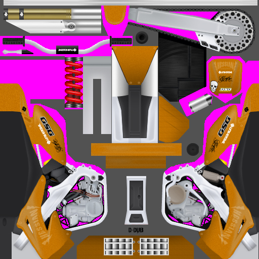 Here's his new ride ! It's got a sparkley look to it in real-life, and I think I got it to look pretty sparkley in the skin. I missed some details in it, only because i couldnt get a good pic of them. Thanks to VMX_GravityX2 for the base and tk_corpse for the handle bars. Dont forget to download the rider too !