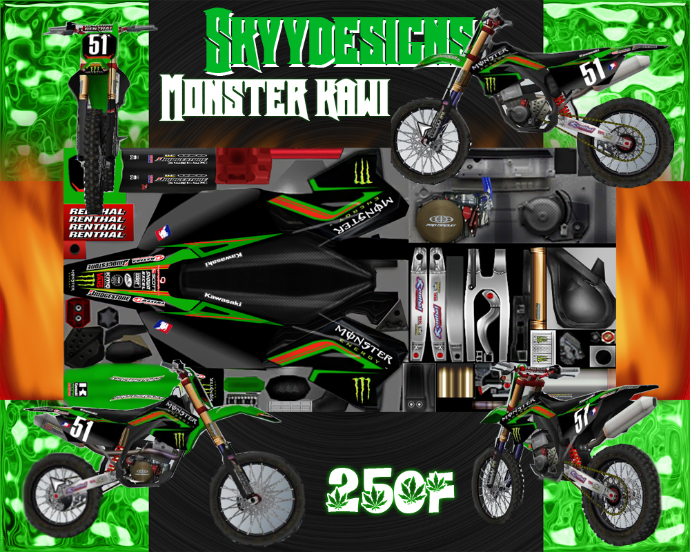 Well I really dont have anything to say bout this one other than every detail was added to make this an exact replica of the 06' Monster Team bikes. Had some help from Rob(4Tweentee) with the custom parts and Nikhil for the pix...and my boy Ghost for help with beta. Its unreal in the game and goes with my rider gear...comment and enjoy every1 its one of my best ever....