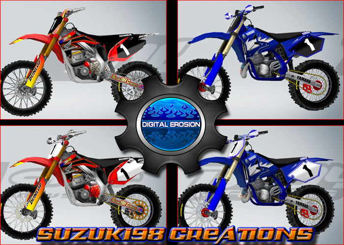 This skin pack has a crf250, crf450, yz125, yz250, and sprocket for the yz's but you can use it on the cr's also. Comments please and hope everyone likes them.
