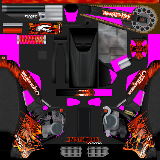 Here it is... The bike you've all been waiting on so long, my personnel custom painted Messiah Ride! I would like to thank tk_corpse for some ideas and making me finish it, and for the amazingly naked angel and the skulls on the tank plastics.. Thank you DanMan! And thanks to all the people on the TwistedDirt Forums for their comments. Hope you all like this one as much as i do (i'm not completely happy about it tho..) Many hours went into this bike and tried to get it as good as i could. This is V 1.0 and a newer version is in progress.. You might be wondering why but i've learned allot of new things and especially on shading. I'm completely redoing my RM template and will design a new Messiah Ride with newer and more detailed graphics on it. Anyway, download and handle it with care, don't even try to scratch it!