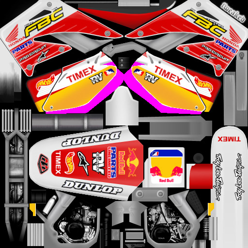Thanks my bro John (tk_disturbed) for his MR3 '01 CR250 base... i made the frame, the shrouds and the sidepanels to look like the '04 CR's instead of the '01 CR's. I've included both the CR250 and the CRF450 versions of this skin in the zip.