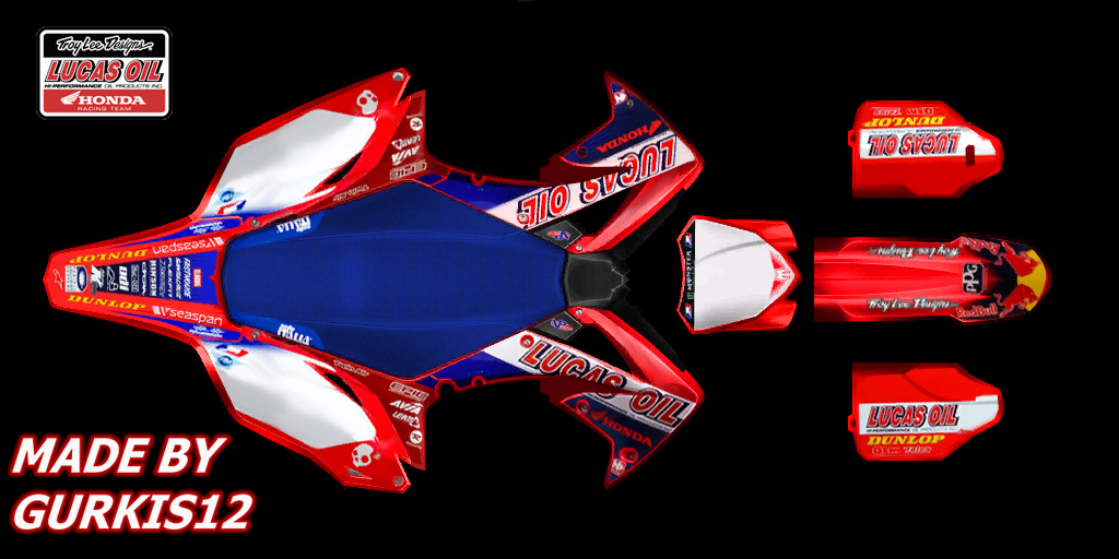 2010 Troy Lee Designs / Lucas Oil / Honda 450. Replaces YZ450f. If you already have my gold H&H honda this skin will overwrite it, if not just put more $$ on front of file. THERE YOU HAVE IT!!!