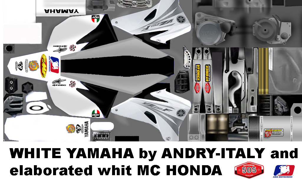 hello to all, this and my last one skin, the base is of Andry-Italy, my friend, I has elaborated it in order to render it factory, hopes you like! thanks to Suzuki98 for the renthal and braking wheels