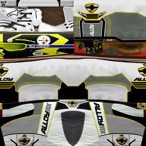 I've wanted to make this for awhile now, so last night I started it. The helmet is a rep of the one Broc Hepler wore at the Highpoint national. I also included a skin with that Hamblin helmet I used for the other alloy skins. I used the palm of tweeked's skin and Disturbed's boots. Lemme know what ya think.