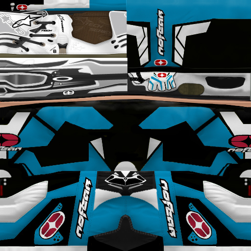 Here's the '04 Nofear Elektron Blue + Red Skin. A FMX Version is included in the zip too. Thanks to VRT_Evo for the base, TK_Tweaked for the helmet, TK_Corpse for the kneepads on the FMX version, and Messiah for the boots. Please download and review !