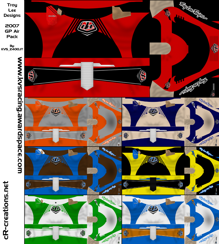 The actual gear only comes in two colors (Red/ Black and White/Blue/Orange) so I had to come up with some new colors, I'm sure most of you will see how I decided on the colors but for those of you who can't, I just used the color schemes of the 2007 Thor Core gear, cause i like them.