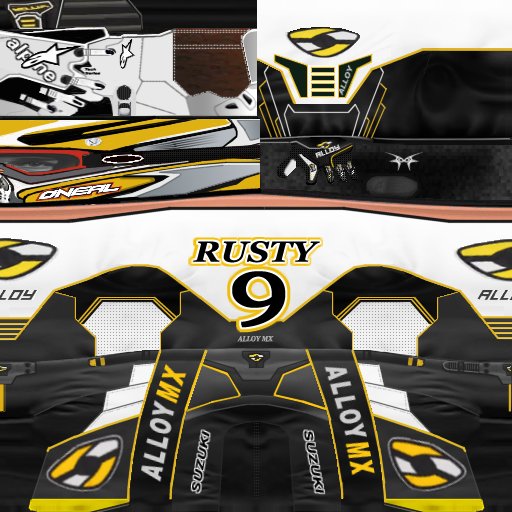Well her is my personal riderskin, its a Alloy Mx black - white - gold colours. this is my personal riderskin if you all want to download it.. hey have fun out there and remember it only a game :)