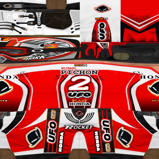 here it is my very first pro riderskin, custom helmet custom boots all my own wrk :) its taken me 5 days to get this out to you all, all colours are sweet and all decals are readable in the game. i know a few honda fans will love this one. You are either a honda yamaha or suzuki or kawasaki fan, what ever the case this is Michaels personal ufo gearand i hope this will please ure taste buds, i've add his personal bike to the zip as well in case you didnt get it earlier. :) peace
