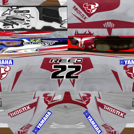 well... i made this write after daytona Reed, had on silver and maroon red thor gear i had tons of pics to show me this. i added mesh to the skin tonight and fixed it up some from what it was, to make it look a lil more realistic. i didnt add stitching cuase honestly i suck at it and i need to get better some how.i worked somewhat hard on this all i did to the helmet was i made a new moulth peace vent. because the other looked to copy and pasted, i made this one from scratch. as for the gear i made it my self EXCEPT that patch on the nee is tk_ tweackeds. Thanks to the_Gala for the awsome tech 10 alpinestar pack i used his boots here obviosly... and that is all take this what its worth i wouldnt call it the best by far but if u like it cool D/L enjoy.