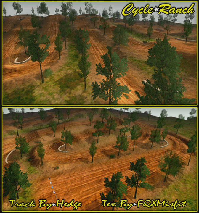 Well guys I finally managed to finish this track I have spent so much time with. The track is called Cycle Ranch and I made it with a particular track in mind, Cycle Ranch in San Antonio, Texas. I warn you however that this is NOT an exact replica. I have not been to Cycle Ranch in years, and I built this purely off of how I remember it. I also changed some things because, well, I can. So please, be easy on me.