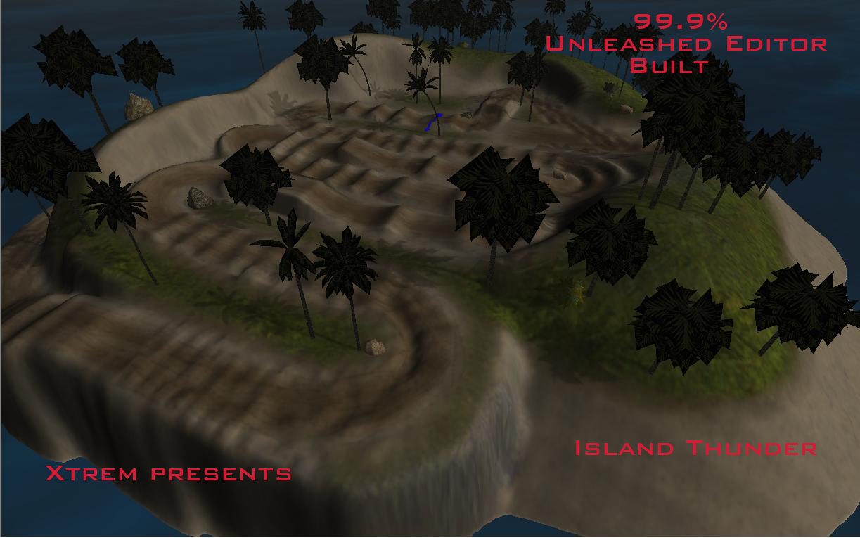 This is my newest release that i worked really hard on for the better part of 2 months. Its got everything, ruts... braking bumps, acceleration bumps... a SX section.... a highspeed section. Not alot of objects for the simple fact that i wanted to ensure everyone could enjoy this track and not have any lag issues. The ocean water looks a bit strange but thats the best i could find for the task at hand.... besides.. we arnt here to look at oceans :)