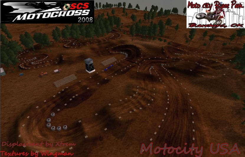 Well finally its done, This track took about 2 weeks to complete. About 5 hours on the displacment. About 3 hours on objects. Another 4 hours on the A.I. which will run about 3 seconds off a good laptime on this track of around 1 minute. Wingman did the textures and i must say im pleased with the color as the dirt here in Oklahoma is very hard to immitate.