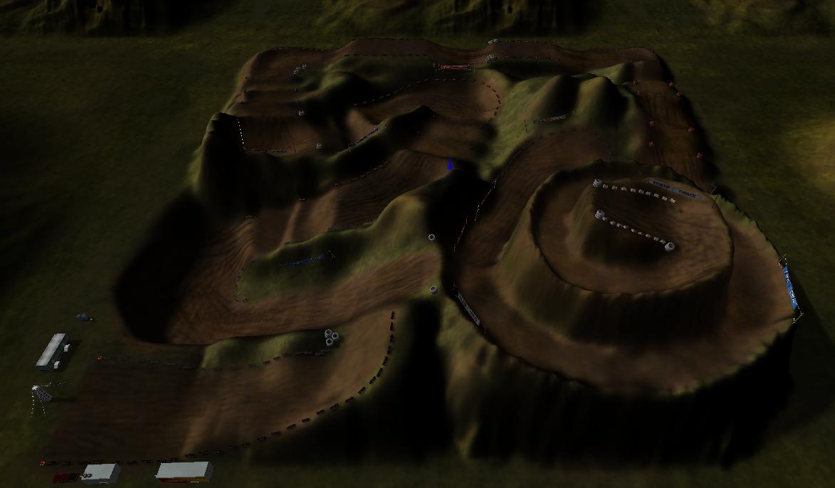 This track flows very well and races well in multiplayer. The first turn is brutal if you come in to hot you may crash if you come in to slow the AI riders will take you out. You can make or lose time on the twist up the mountain depending on line choice, you can also blow other riders over the side if you get a inside run on them. Then the leap off the top allows you enough time to grab a drink of your favorite beverage. I hope you guys like.