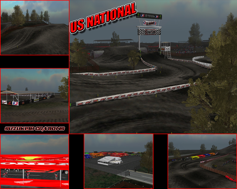 this is the first track i have release in about 3 years. i have been working on it for almost 2 months everyday and for the last week about 12 hours a day. it is set in a ama national theme so hope everyone likes it. almost all of the objects are custom objects most from me and the rest from messiah and albertsx65. i must warn you it has a lot of objects and i set the fog setting low so hope it is not a lag problem. it will lag on free ride when you go in the pits. i tried to upload it on factory but it will not let me upload