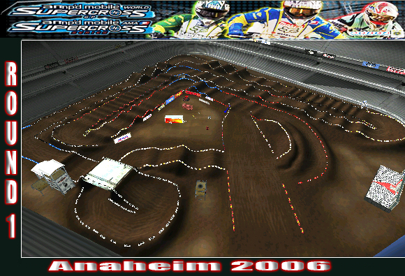 ok well first off id like to thank my beta testers,MX_king,AMA_Racex,and other people i cant remember who i sent to hahah. sorry if i forgot yeah.Huge thanks to AMA_Racex for putting in crowd sounds for me as well as animated moving camera men.and mini map.on to the track i tried to make this ride just like the real anaheim sx,i watched the video over and over and over again on my comp.some sections u have to go slower to go faster.if u make your own line it will be tough but its possible.all the lines the pros were doing are possible.the AI do ride good on 125% hard but u can still beat them.i think thats all d/l and have fun with it.