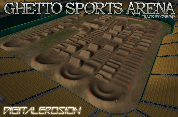 track should resemble a indoor arena type feel. more like a private indoor practice track of sorts. cones outline the track stay inside of those and you should have no problems with the spline. a lil narrower than some of the sx's released thus far but IMO it rides real great at this width and scale. test bikes were 125 , 250 and 500cc the big triple triple in the finish line area is kinda sketchy on a 125, but 250s and 500s make it no problem. i wish i could thank someone else for this track like i normally do but. this one was all me for a change. hahaha. props to rob for some pointers on texturing and such tho.. thx bro