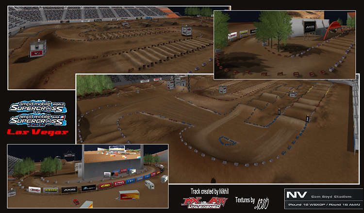 Track appears as Las Vegas 2006 in the supercross section. Good laptimes are in the 1:15-1:17 range.