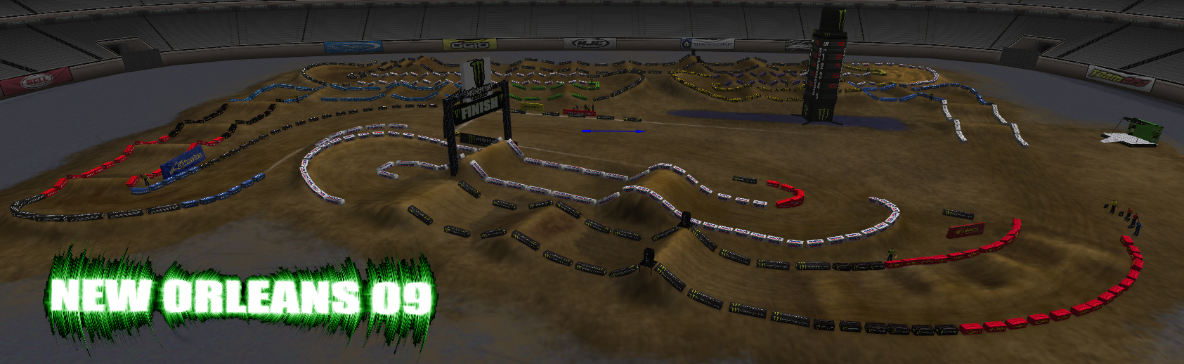 The replica of the New Orleans round of the AMA supercross series. All bales are in the same place they were in the real race. This track features a resized stadium, new towers, and bales across the start after you take off, all thanks to albertsx.