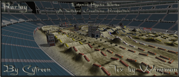 I figured its about time i release another track for you all to ride. Its Ben over 6 months sense my last release, and hear is my latest endeavor. Parlay is a supercross styled track built for the Enhanced Physics mod or Real Physics like some people have come to call it. If you haven't try-ed the Mod yet please do so and use them when riding this track. You can get them at www.twitchedcreations.com The track will not ride the way i intended it to ride if you don't use the mod. For the people that will not use the mod. Please only use the pro physics setting when riding this track. There is no friction mapping.