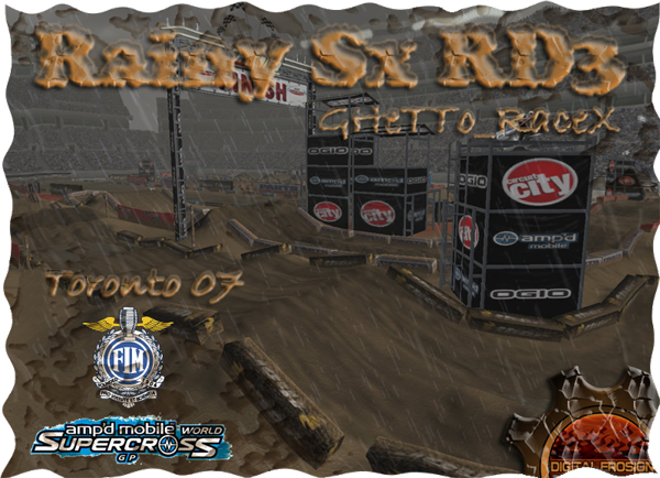 Haha, yea it has fiction guys. In fact when I started this Rainy Sx, I didn't know the track map I was using was the Toronto 2007 map. So after seeing the race I had to decide if I needed to delete my work or finish it anyways. So here it comes... The track has the same feeling as the others rounds but I tried to do something different and better than the others rounds. I started the track for the stock physics then after riding many laps on it using the Real Physics, I found it rides really great using them, so I tweaked the track so everything can be done in Real Physics. It just mean the track can be ridden in both Stock/Real Physics.