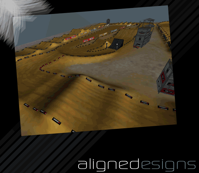 Here is my latest Supercross. I have no idea where the name came from it just kinda popped up. Anyways the track rides really smooth and has lots of neat rythems a nice long whoop section with a double that you have to make it through the whoops right to make. Its not that difficult but its neat to time it just right. This track rides like a stock Sx track for MVA. I was going to have animated camera men but i couldnt get anyone to do them so have fun riding by the zombie camera men. Thanks for D/Ling and have fun.